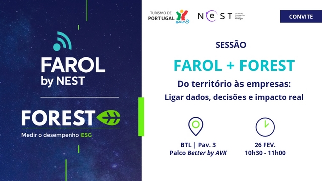 26 de fevereiro, entre as 10h30 e as 11h00, no Pavilhão 3 da BTL (Palco Better by AVK), uma sessão dedicada às plataformas FOREST e FAROL, duas ferramentas inovadoras que reforçam a transformação digital e sustentável do turismo em Portugal.